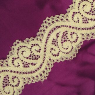 This great white cotton scalloped crochet lace is 7/8″ wide with a 7/8″ pattern repeat.